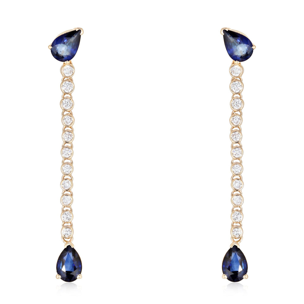 Sapphire Pear & Diamonds Drop Earrings